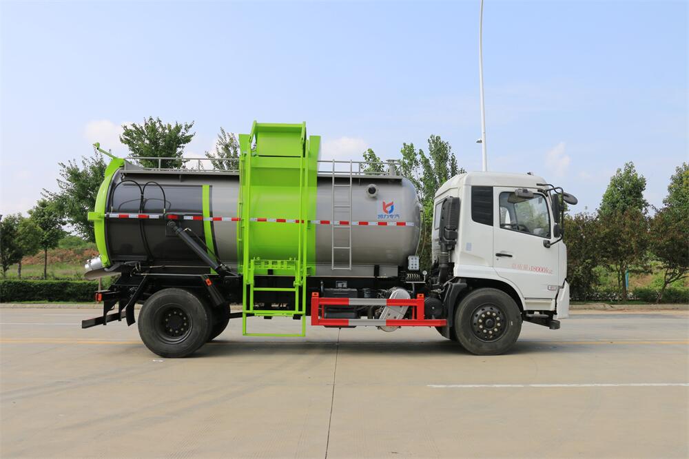 上裝配置:罐體容積12m3,配備120L/240L掛桶提升翻轉(zhuǎn)機構(gòu),液壓系統(tǒng),后蓋液壓鎖緊開啟,罐體可以舉升自卸,尾部帶自流閥;用于運輸液態(tài)垃圾,其特點操作簡單,密封性好,無泄漏,無異味;可選裝固液分離功能,推板擠壓功能,常用于餐館的垃圾轉(zhuǎn)運處理。