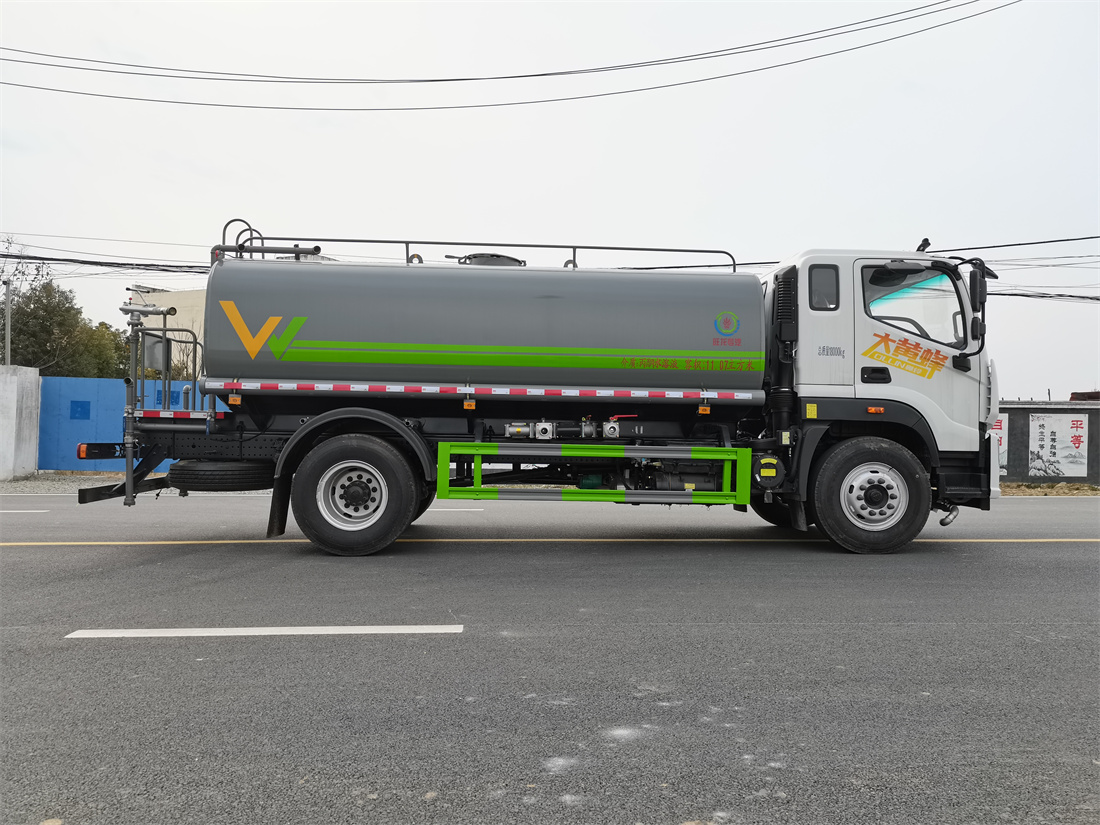 上裝配置:罐體有限容積11.07立方,罐體實際容積14.4方,罐體鋼材厚度5mm,采用大流量水泵60-90,基本灑水功能前沖、后灑、側噴、工作平臺帶消防高炮(可調節(jié)成霧狀、直柱狀)、罐體兩側炮筒、可泵進泵出,帶兩根抽水軟管。后平臺可選裝霧炮裝置
