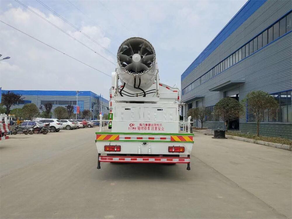 上裝配置:罐體容積為 12立方,選配風(fēng)送式霧炮機(jī)組射程30米、40米、50米、60米、80米、100米、120米霧炮,罐體鋼板為4mm碳鋼Q235材質(zhì),罐內(nèi)隔板具有防波作用,以減輕汽車行駛時(shí)罐體液體沖擊,罐體及整車外形尺寸按照公告。帶大功率專用灑水泵,泵可自吸自排,整車前沖、后灑、側(cè)噴、帶65消防接口,后平臺(tái)配CLW-50、CLW-60、CLW-80、CLW-100、CLW-120型風(fēng)送式霧炮機(jī)組;罐體前封頭配大功率柴油發(fā)電機(jī)組;前封頭帶水位計(jì),后平臺(tái)主管路帶1寸澆花接口,后爬梯。帶兩根輸水管及陰陽(yáng)端。罐體顏色:銀/灰/綠,罐體兩側(cè)噴“多功能抑塵車”字樣,貼反光標(biāo)示。