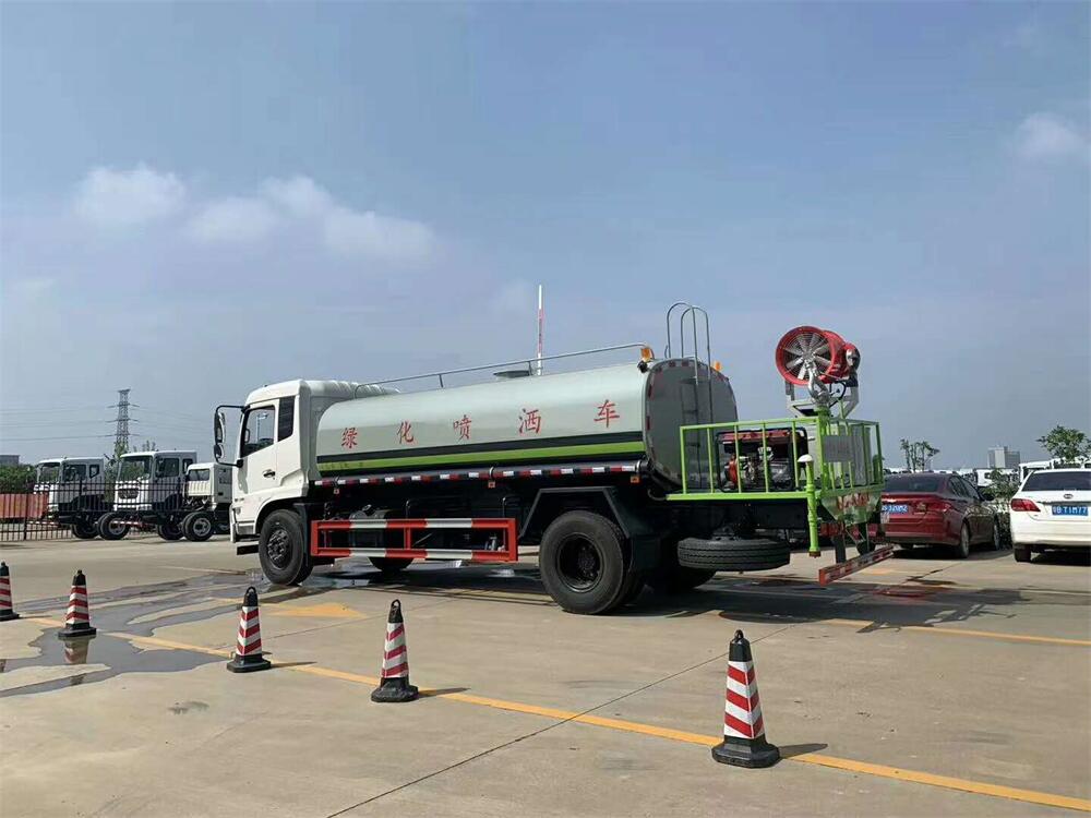 上裝配置:罐體容積 12-15立方,風送式霧炮機組30米,40米選擇,罐體采用國標Q235碳鋼材質,罐體厚度4MM,前后封頭5MM加厚型,罐體內雙層隔板具有防波蕩作用,以減輕汽車行駛時罐內液體沖擊;灑水車整車及外形尺寸嚴格按照**機動車公告制作而成;裝配大功率專用灑水泵,前沖、后灑、側噴、后平臺帶綠化灑水炮,灑水炮可全方位旋轉,可連續調成直沖狀、大雨、小雨、毛毛雨;配消防接口,自流閥,濾網,帶自吸自排功能。前封頭帶水位計,后平臺主管路帶1寸澆花接口,后爬梯,帶1個消防接頭,帶1個自流閥,1個過濾裝置,其余標配。