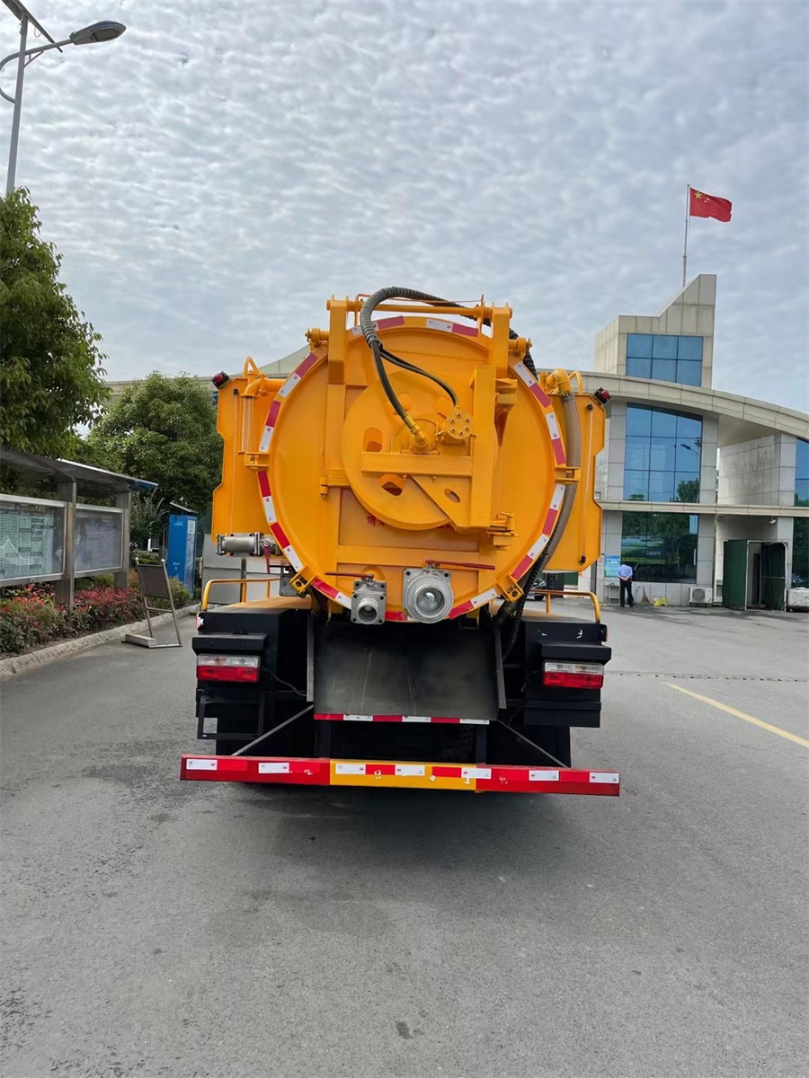 15方清洗吸污車-東風(fēng)天錦15方10+5清洗吸污兩用車-帶副發(fā)動(dòng)機(jī)圓罐紅黃色