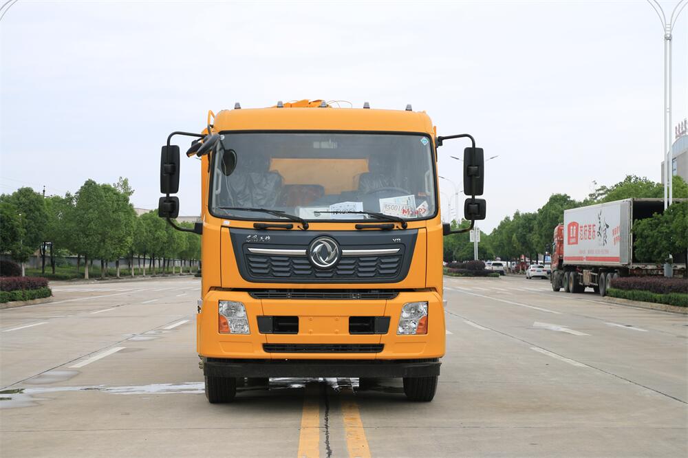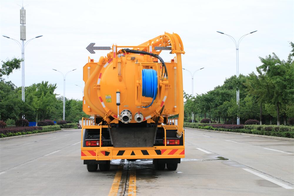 上裝配置:清水罐約 5 立方,污水罐約 10 立 方;罐體 8mm 厚,封頭 8mm 厚,水罐、污罐可 互通,用 100 球閥**開關(guān);清洗部份采用天 津通潔高壓泵,壓力 19Mpa,流量 215L/min, 配 80 米直徑 22 高壓管帶液壓卷盤;吸污部份 采用濰柴375馬力副發(fā)動機(jī)帶山東SK-30水循 環(huán)泵(副發(fā)自帶),吸污罐帶舉升,后封頭焊 死(可選擇后封頭全開),尾部加裝一個 600mm 快開,罐體后尾部一個 DN150 排污口球閥,一 個 DN100 吸污球閥帶出口盤,一個視污窗,一 根 10m 吸污管,一套陰陽端,壓力表,防溢 閥,箭頭燈,工具箱,淋管裝置,高壓泵帶氣 吹水。配一個 4.5 公斤水雷噴頭,另帶一個 80 公分手持洗車噴頭。