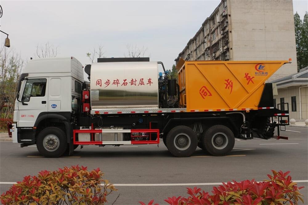 同步碎石封層車-重汽豪沃后雙橋同步碎石封層車